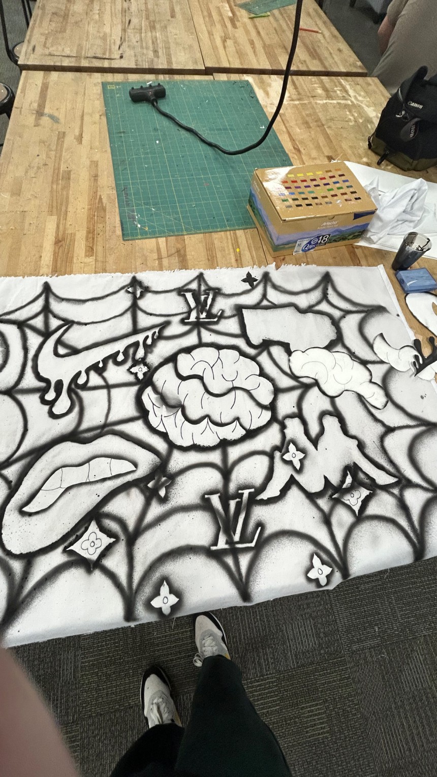‘Nike Swoosh’ , ‘Kappa’ , ‘Creative Brain Power’ , ‘Louis Vuitton’ , ‘Straight teeth clenching lip’ Credited designs caught in spider web’